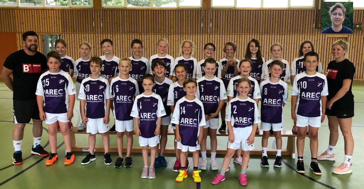 hintere Reihe von links: Trainer Tiago Azevedo, Lena Geiselhart, Lisa Keppler, Nikita Keller, Lukas Gekeler, Jella Hermann, Mila Huth, Nikolas Marinovic, Jakob Bez, Alicia Marinovic-Oliveira, Leonie Kinzelmann, Vina-Mae Hanker, Trainerin Corinna Jaiser Saison Vorbericht Zweimal wöchentlich trainieren wir mit 28 Kindern der Jahrgänge 2011|2012. Ungefähr die Hälfte der Kinder gehört schon im zweiten Jahr zur E-Jugend, der Rest kam aus der F-Jugend neu dazu. Es dauerte nicht lange bis aus den beiden Jahrgängen eine Mannschaft wurde. Die Kinder verstehen sich gut und wir haben viel Spaß im Training. Mit mehreren Trainern können wir aus dem vollen Schöpfen und den Kindern in zwei Gruppen jeweils Koordinations- und Krafteinheiten, als auch handballerische Übungen anbieten. Die Kinder werden gefördert, aber nicht überfordert. Je nach Leistungsstand können auch spezifische handballerische Techniken geübt werden. Der Spaß mit dem Ball in jeglicher Form (Handball, Funino, Parteilball, …) ist einer der wichtigsten Bestandteile des Trainings, gefolgt von Koordination und Kräftigungsübungen. Wir hoffen, dass trotz oder mit COVID-19 eine Hallenrunde 2021|2022 stattfinden kann. Die Kinder sind super motiviert und möchten zeigen, was sie im Training lernen. Im Hintergrund haben wir tolle Eltern, die uns super unterstützen und sich darum kümmern, dass ihre Kinder fast immer vollzählig am Training und den Spielen teilnehmen können. Für die kommende Saison haben wir drei Mannschaften gemeldet: • Ein 4+1 Mädchen-Team , ein 4+1 gemischtes Team und ein 6+1 gemischtes Team Wir freuen uns, dass wir so viele Kinder für den Handball begeistern können und hoffen, dass wir eine schöne und erfolgreiche Hallenrunde spielen können.